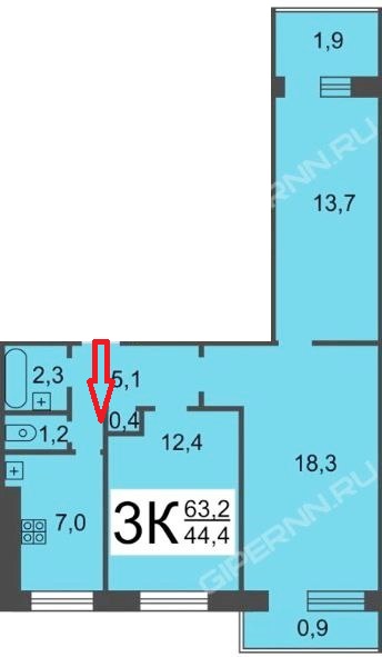 Общая площадь: 63 кв. м.