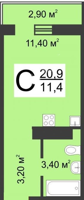 Уютная, светлая квартира на 11/17эт., общей площадью 21 кв.м.
